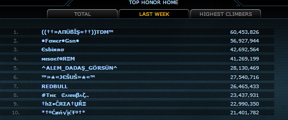 The rest of the honour values in the top 10 made in the week can be done perfectly legit with a honour booster and hades gates, people can easily do well over 100m honour in 1 week like this.